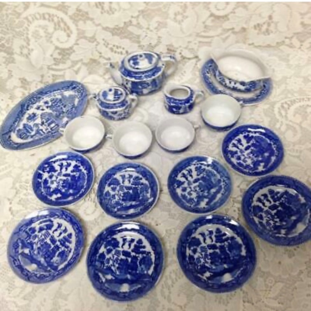 This is a beautiful 19pc Child's Blue Willow Tea and Dinner Set consisting of the following: