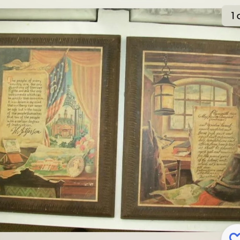 Vintage Pair, Plymouth 1620 and 1776 T. Jefferson Plaque