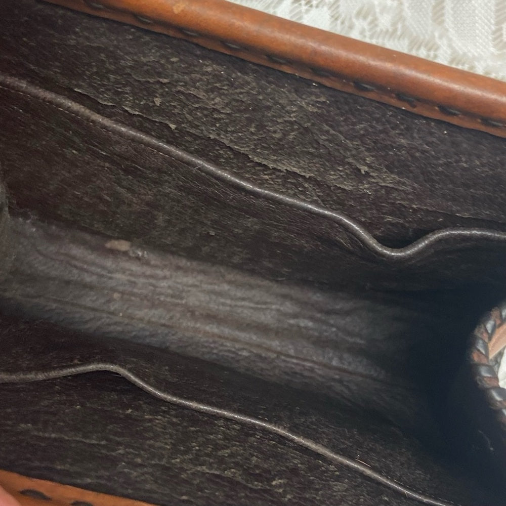 Vintage, PCE Genuine Brown FloralTooled Leather Handbag 10in x 7in x 3in