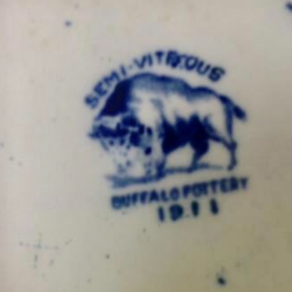 The spout of the teapot was partially cutoff, not noticeable unless at close inspection, but overall the set is in very good vintage condition with minimal wear such as crazing, hairline fracture and some staining as shown in photos. The set is marked: 1911 Buffalo Pottery, Semi Vitreous. Package weight is about 5 pounds.
