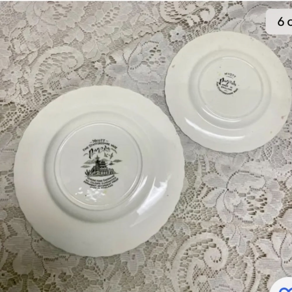The set is marked: Myott, Pagoda, Made in England, Fine Staffordshire ware. It is in very good vintage condition, with minimal wear as shown in photos. Package weight is about 4 pounds.