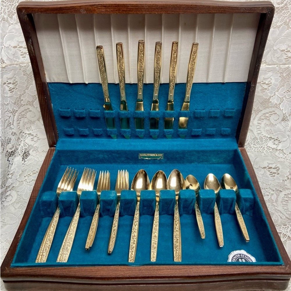 Vintage, Rogers, Korea 29-pc Gold Plated Flatware, Service for 6 with Box (2ZE-0