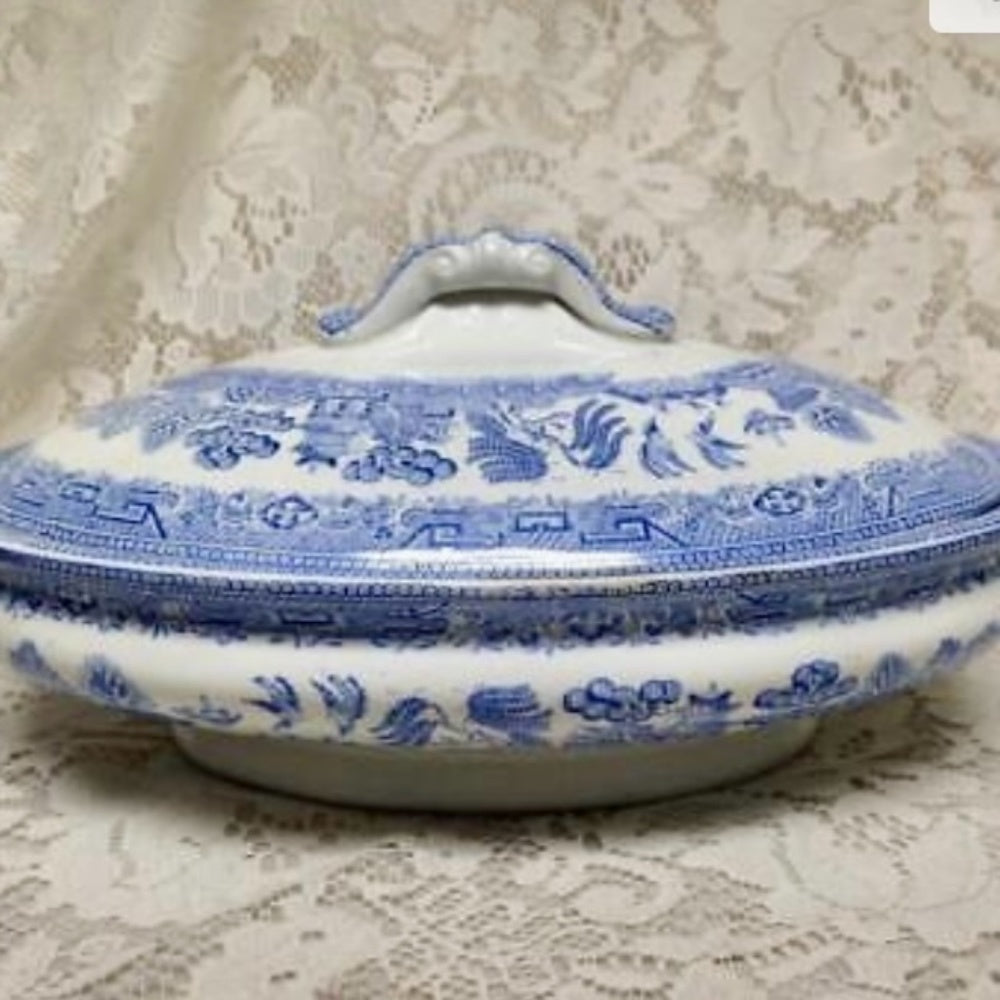 Vintage, Ruth Ann Ironstone, 2pc Blue Willow, Large Soup Tureen 11in x 8in x 5in