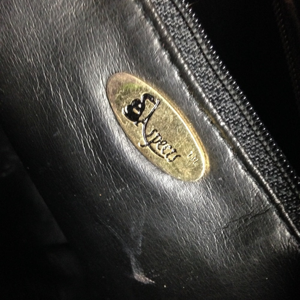 This is an elegant Clutch made of Black genuine Snakeskin leather and it comes with 50-inch shoulder or crossbody leather strap. It measures about 12 inches long, 9 inches high and 2.5 inches wide. It is in good condition with minimal wear as shown in photos. It has a makers label as Spects.