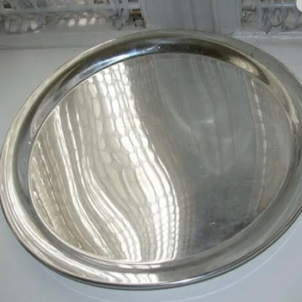 This is an elegant Coffee or Tea set made of pewter. The beautiful Coffee or teapot measures 7.5 inches high and 10 inches wide. The 2-pc sugar bowl with lid measures 4.5 inches high and 4 inches wide and the creamer measures 3.5 inches high and 6 inches wide. The round tray measures 14 inches in diameter. The set is in great condition as shown in photos, however take note of the engraved markings on the tray that says: Spring Grand American (ATA) All Around Championships, Runner up January 28, 1979. The set is marked: Steiff Pewter, ATC ; Historic Newport Reproduction.