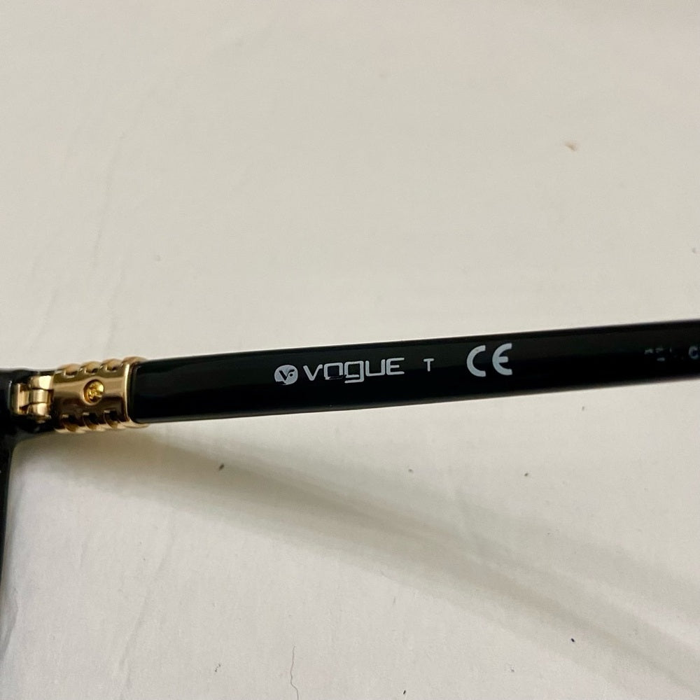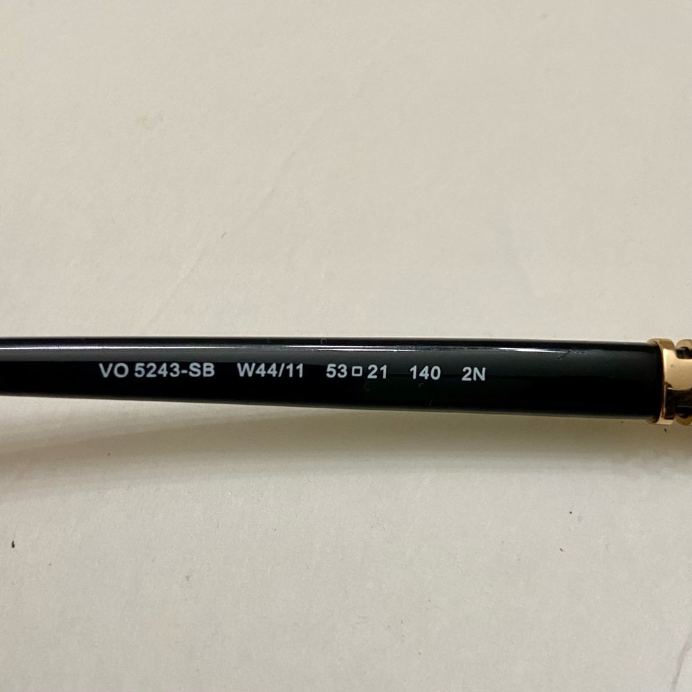 This is a prescription black cat’s eye sunglasses and it measures about 5.5 inches long and the lenses is about 2.25 inches high and 2.5 inches wide. Both side temples has gold accents with rhinestones. The frame is in good vintage condition as shown in photos. The temple has markings: Vogue, VO5243-SB W44/11 53#21 140 2N.