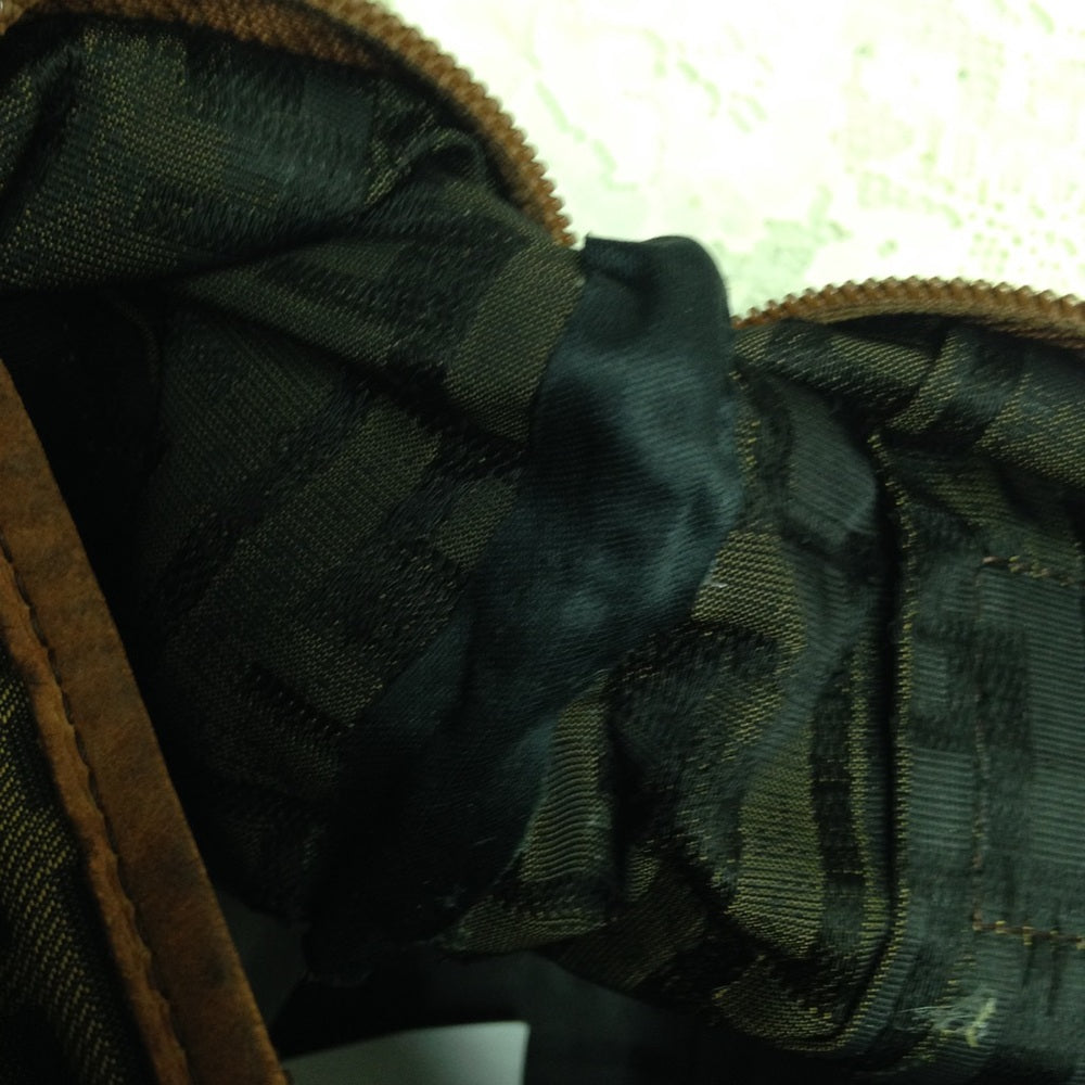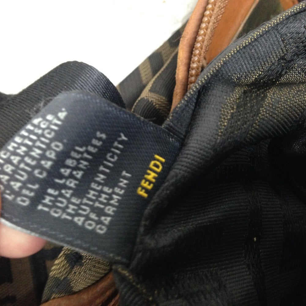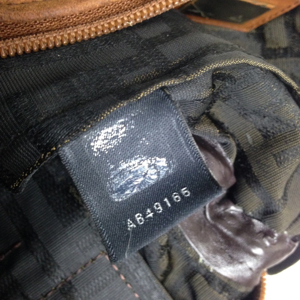 This is a pre-owned Fendi, Zucca Pattern handbag made of Coated canvas with tan leather handle trim. It measures 9inches long, 8 inches high and about inches wide. It has repairs on the leather trim and pull as shown in photos. Also repairs on the interior and age wear as shown in photos. A very rare Fendi for collectors. It is in distressed condition so please supersize photos for condition details. It is marked: Fendi, With serial number shown in the last photo.