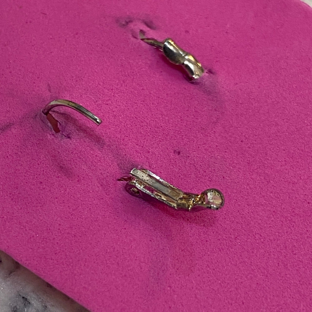 This is an elegant pair of princess earrings decorated with a faux yellow gemstone surrounded by rhinestones. It is a pierced dangling earring and measures 1" long and 5" diameter. The set is new without a tag, and has never been worn. Please super size photos for condition details.